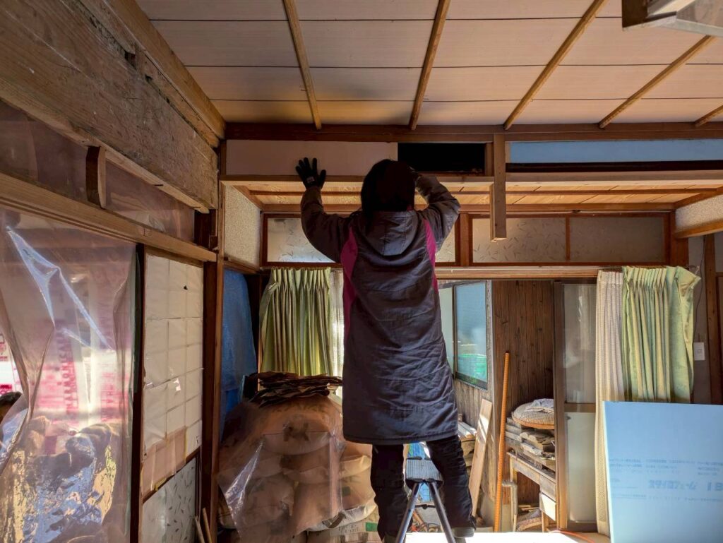 現在避難している家はまだ工事途中の状態です。建具が足りず、ビニールシートで部屋を区切ったり、ブルーシートや断熱材に囲まれながら生活しています。改装作業が追いついていないため、DIYや大工仕事が得意な方のお手伝いを募集しています。また、倉庫の整理が間に合っておらず、車や資材などが入り切らない状況です。倉庫整理や片付けのお手伝いをしてくださる方も大歓迎です。